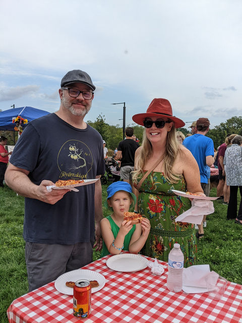 ​ Many volunteers put in long hours to set up tables and chairs; decorate the park with Italian flags; and ensure that signage, tickets, voting chips, ID checks, beer and wine, and of course the pizzas were ready by the 5 p.m. opening.
